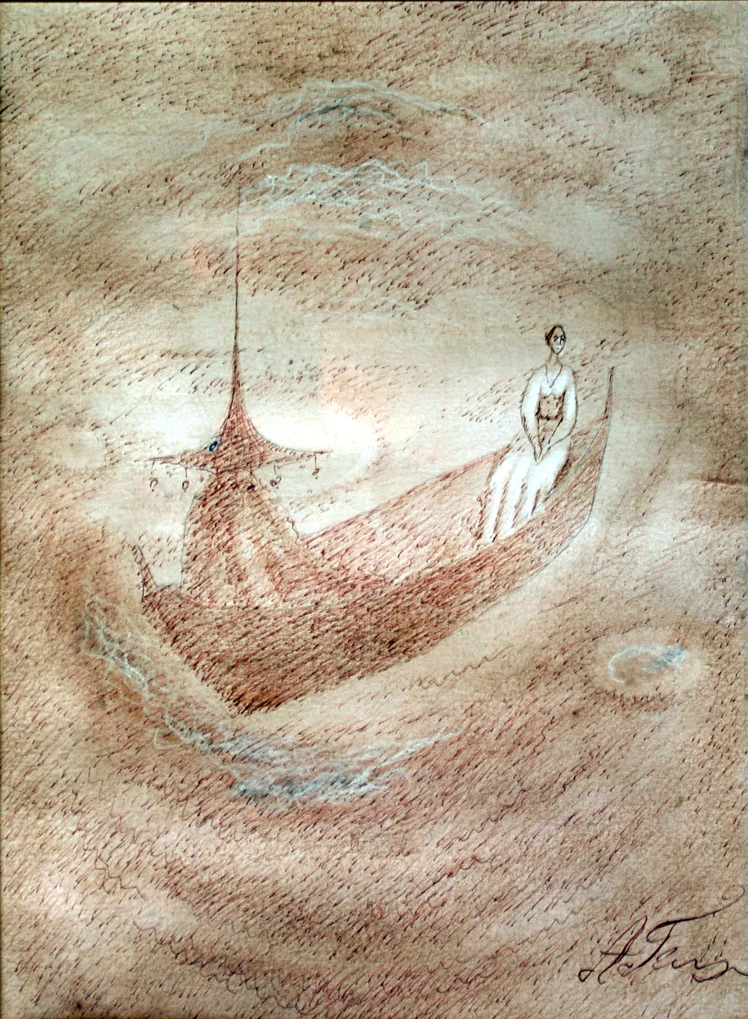 In a Boat, 2013 Water color, ink, pastel on paper 20 X 16