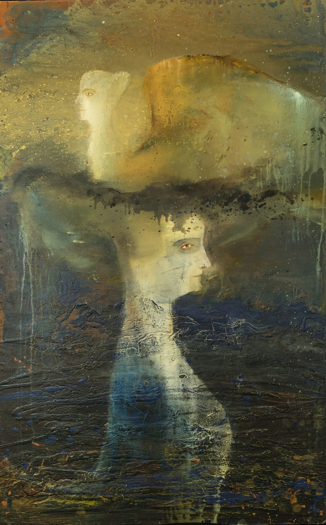 The Mysterious Woman, 2019 Mixed media on board 48 X 30